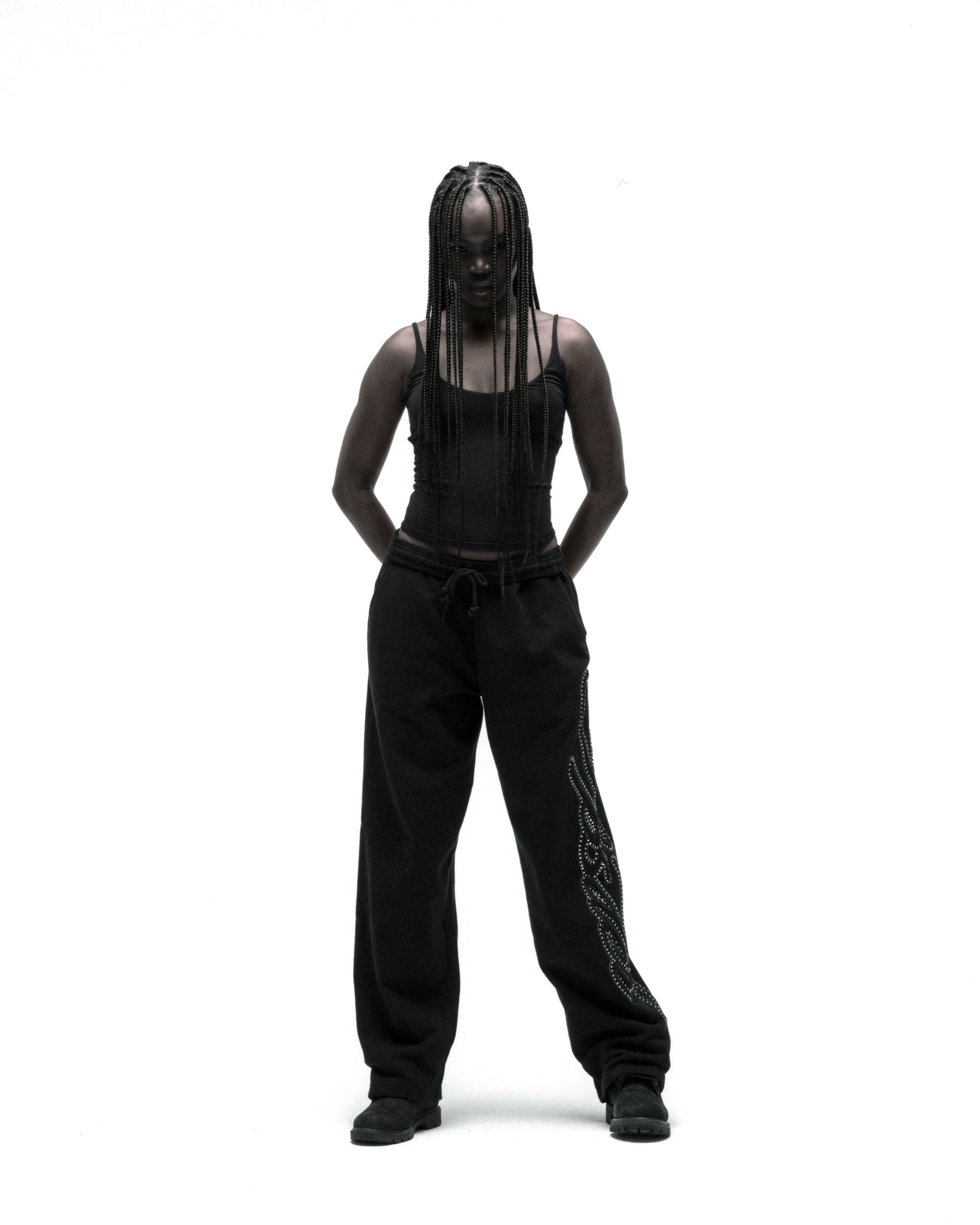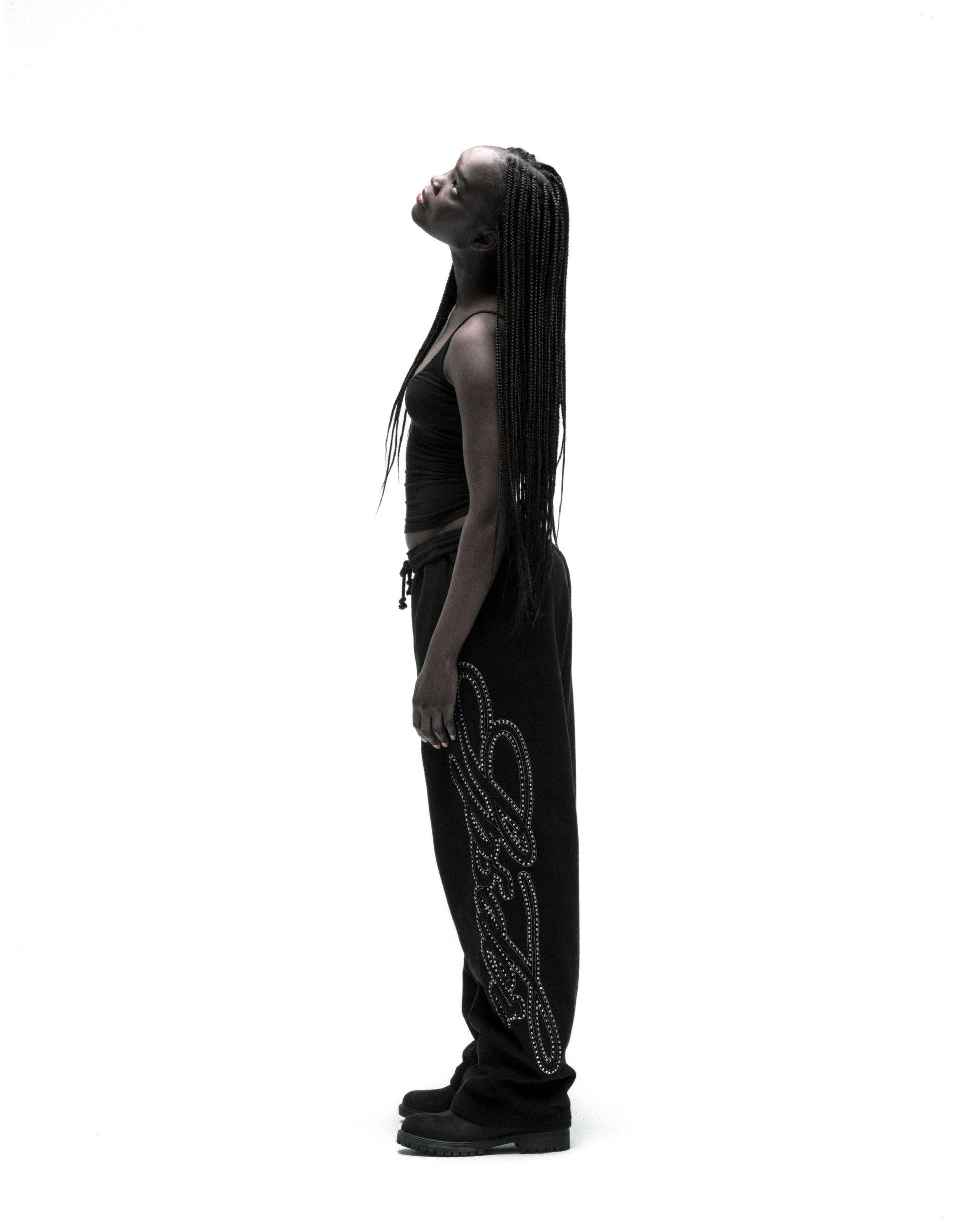 RHINESTONE SCRIPT WIDE LEG SWEATPANT