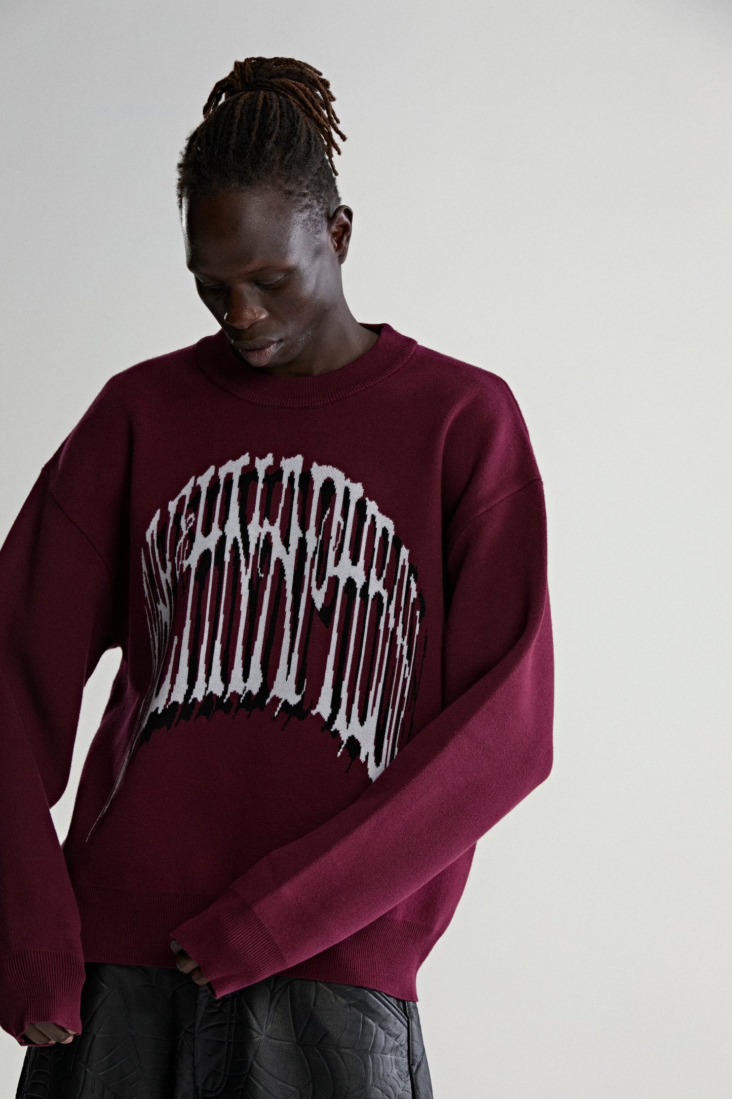 Jacquard knit “Arachnaphobia” front graphic.