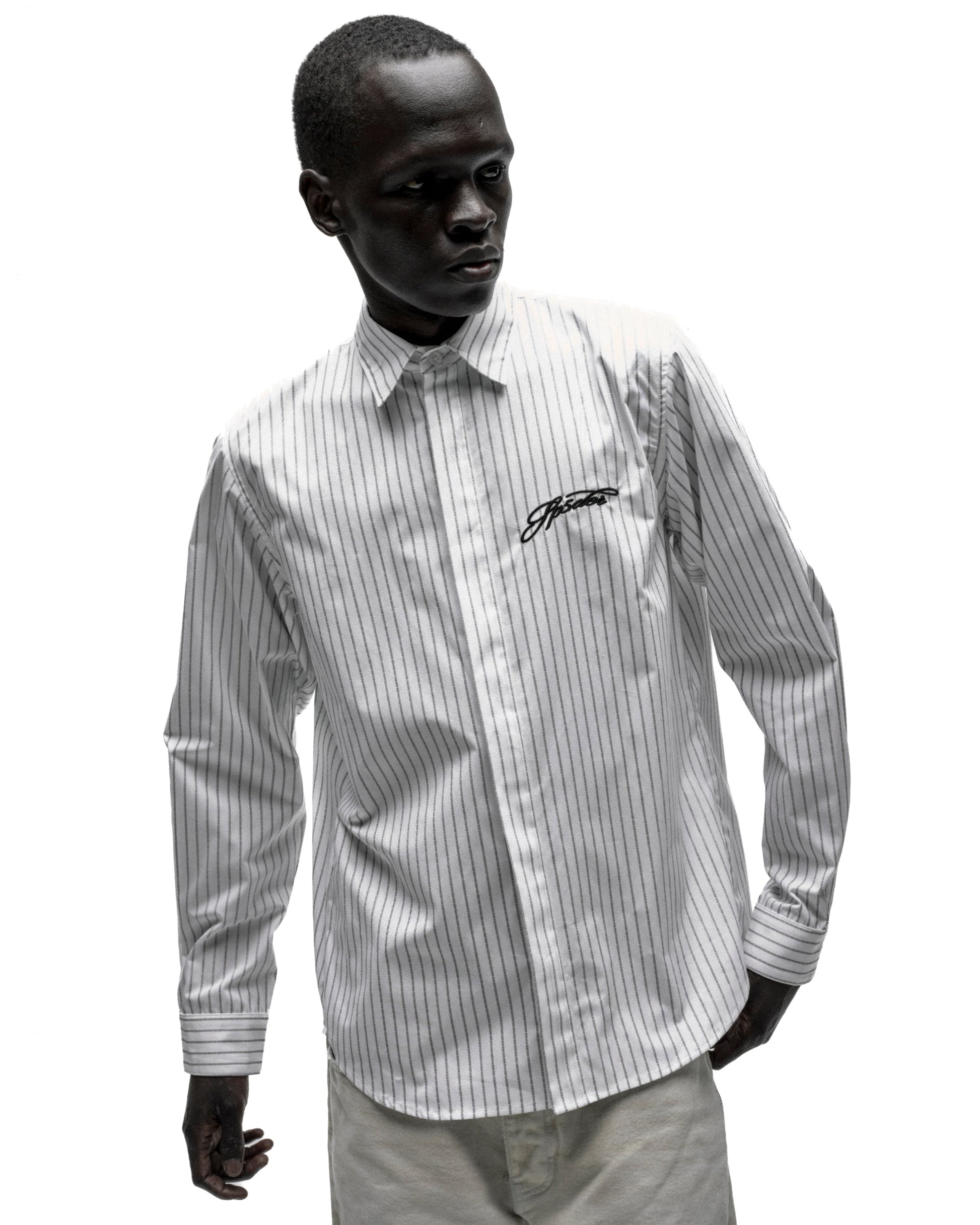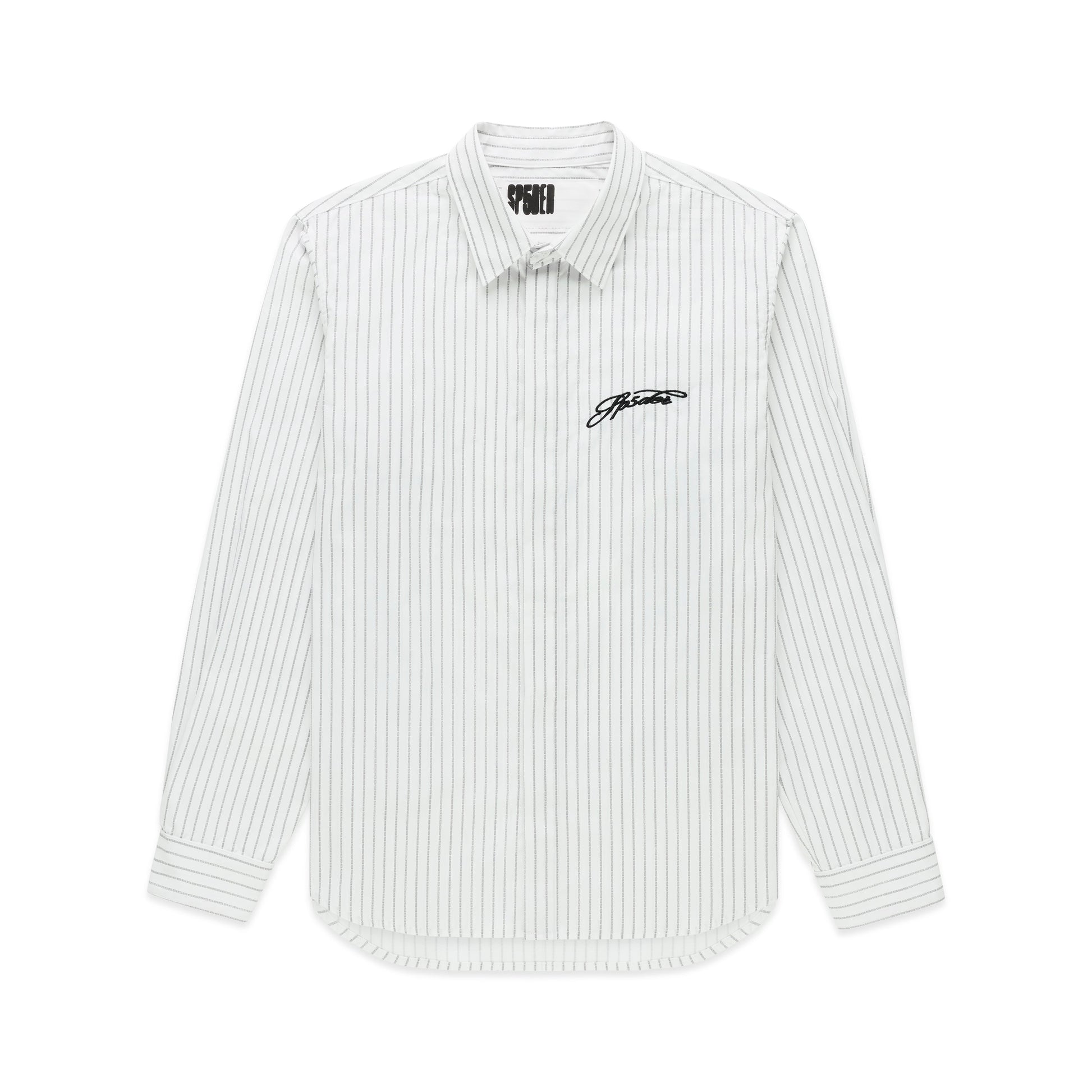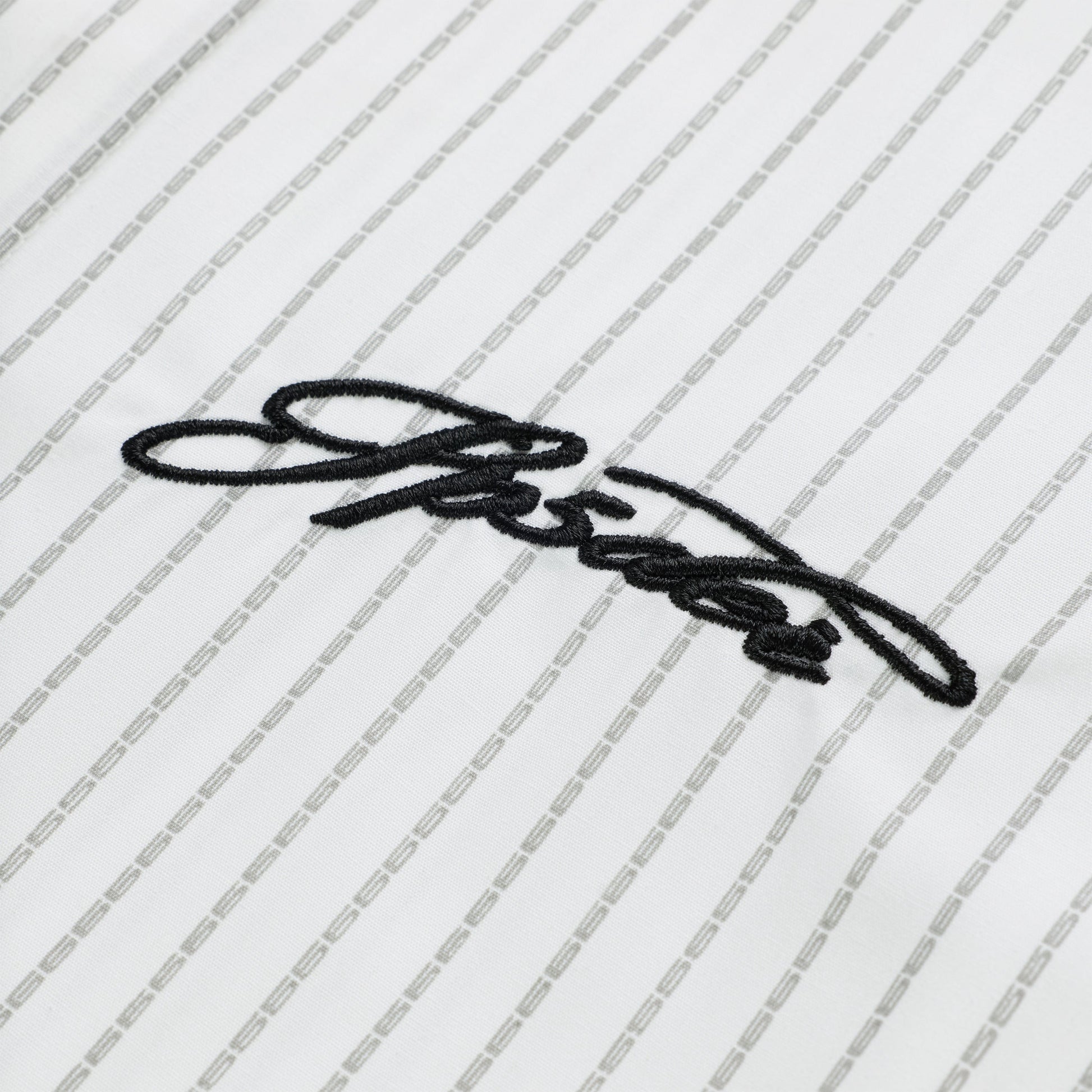 Embroidered script logo on chest.
